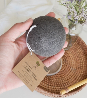 The sponge gently exfoliates everyday dirt and makeup. Green tea or charcoal infused.